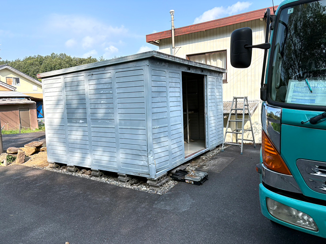 敷地内に設置されていた簡易的な物置。物置の歪み、経年劣化による錆も目立つようになったため、安全面を考慮して撤去を希望されることは良くあるケースです。